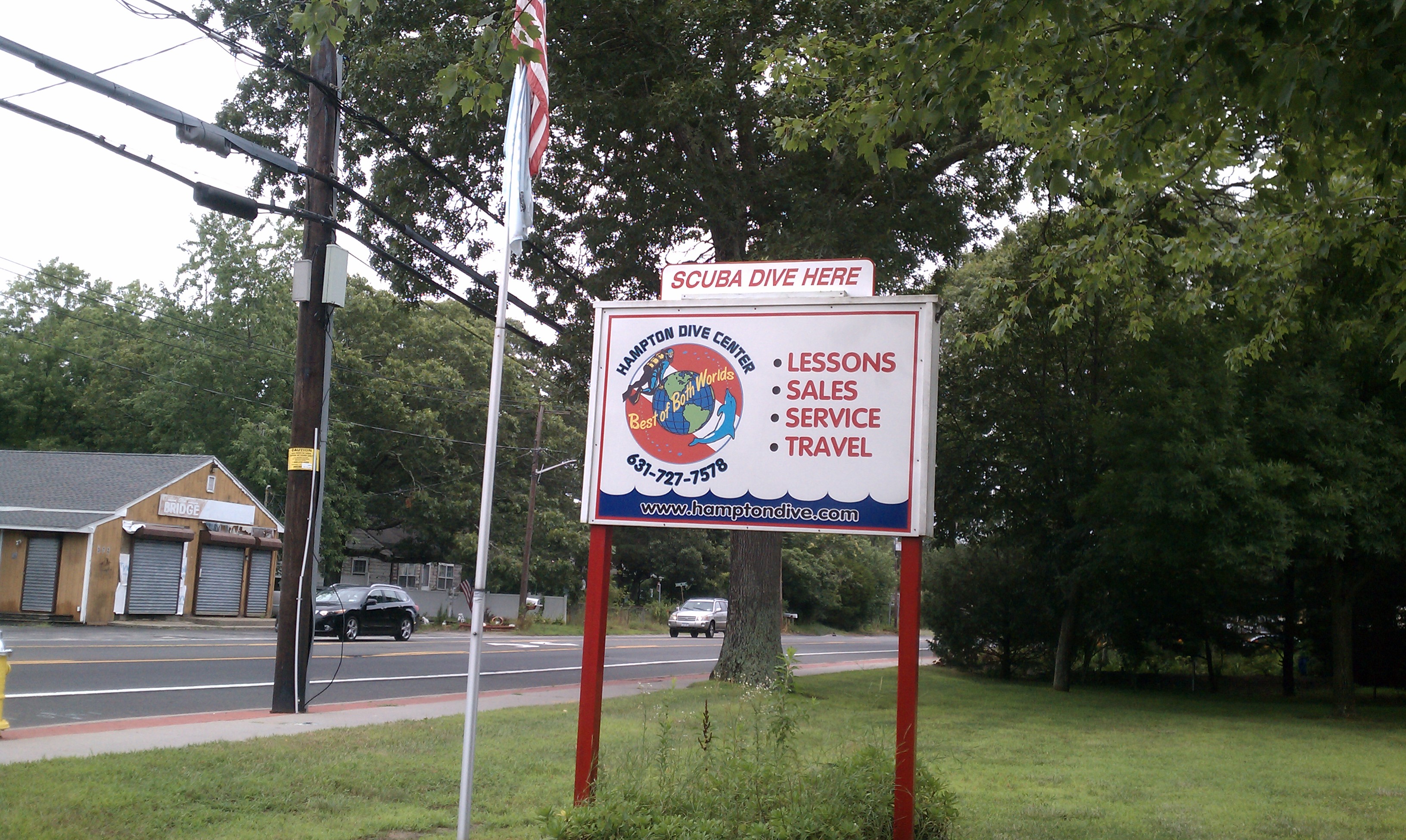 the former pattern. What to do? Marian decided to abandon her usual “Grin and Bear It” approach for a Lycra body suit that will offer her some protection. We set out for our local Scuba Dive shop, The Hampton Dive Center, located on Flanders Road (Rt. 24) near Riverhead. There Brian was very helpful in selecting the right suit and size for Marian’s petite yet plush figure. The shop stocks a complete line of dive equipment, offers dive courses and certifications, and features some great dive trips to exotic locations around the world. Our Hamptons beaches are great, but who wants to miss diving in Fiji? Properly outfitted, we pressed on.