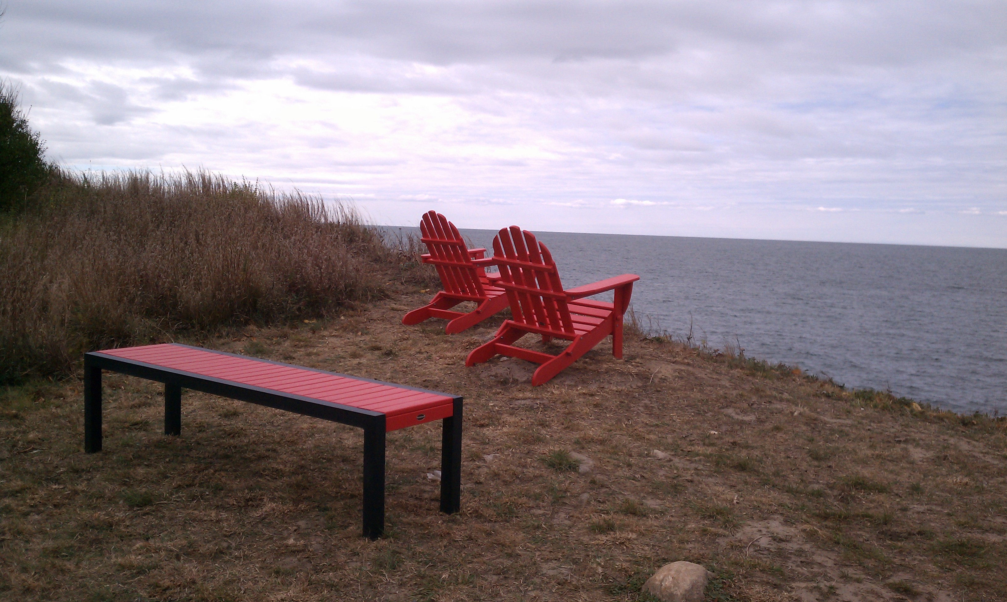 be walking on a path through a field, and your stroll will end at a bluff overlooking the water.