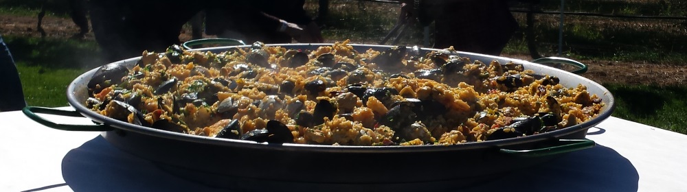 Miguel Martin, Palmer’s winemaker, and his hard-working wife Ellen delivered some fabulous paella for a happy crowd of wine club attendees. Typically thoughtful, the Martins offered both traditional paella, loaded with delicious shellfish and shrimp, and a vegetarian paella alternative. In case you think that cooking two huge platters of rice outdoors is an easy task, it isn’t. Ellen and Miguel worked hard to turn out these delicious treats. Note the Weber, put to an unusual use.