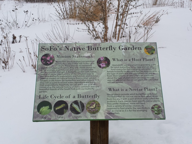In better outdoor weather, there are marked trails and exhibits that will interest budding naturalists. I did tramp around after the visit and found this butterfly garden, awaiting the return of the butterflies.